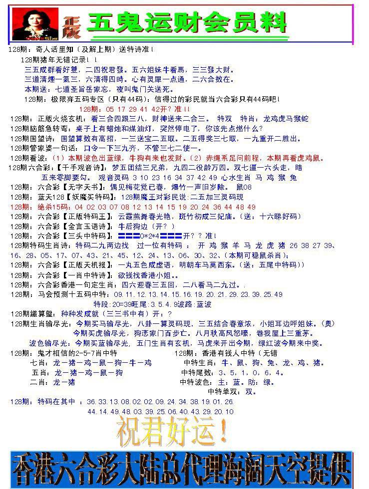 128期-五鬼运财会员料