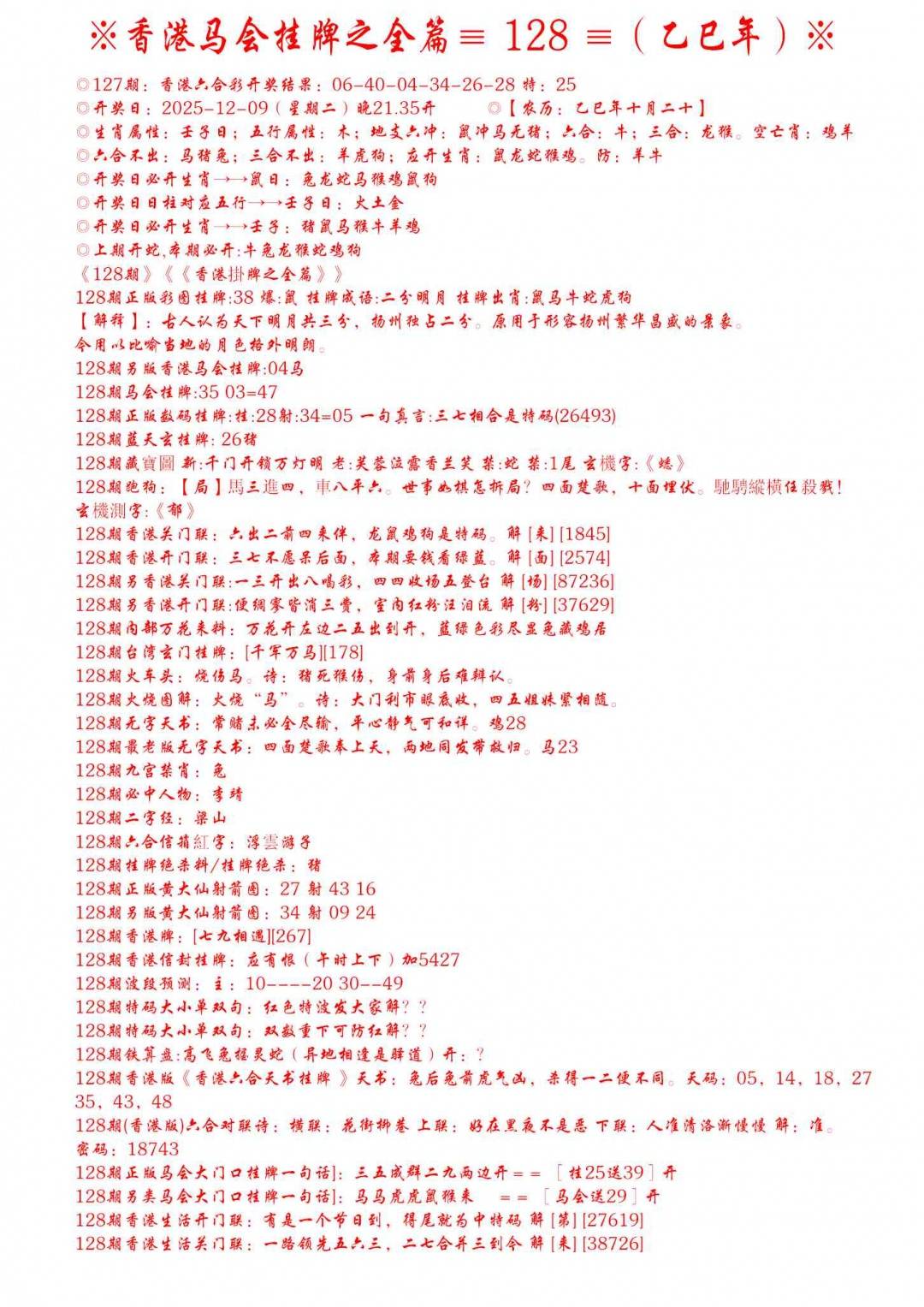 128期-手写马会挂牌